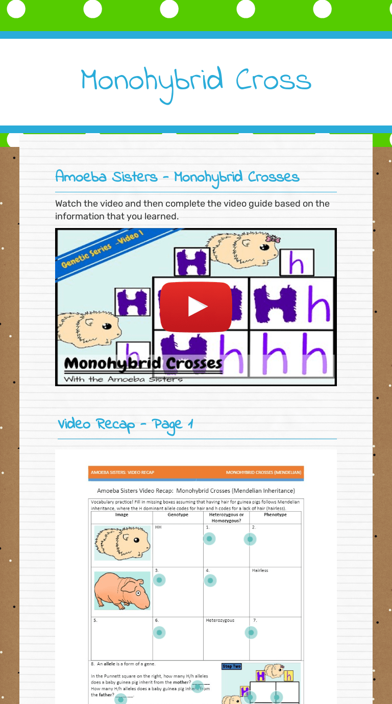 For additional support, you can print the questions for use as an. Until you get a solid understanding of genetics and cells, dihybrid and monohybrid can be a little confusing, even after we've discussed . In this activity you will practice with one trait crosses (monohybrid) as well as test crosses. Monohybrid crosses are the first step to understand mendelain genetics. When we study the inheritance of a single gene it is called a .